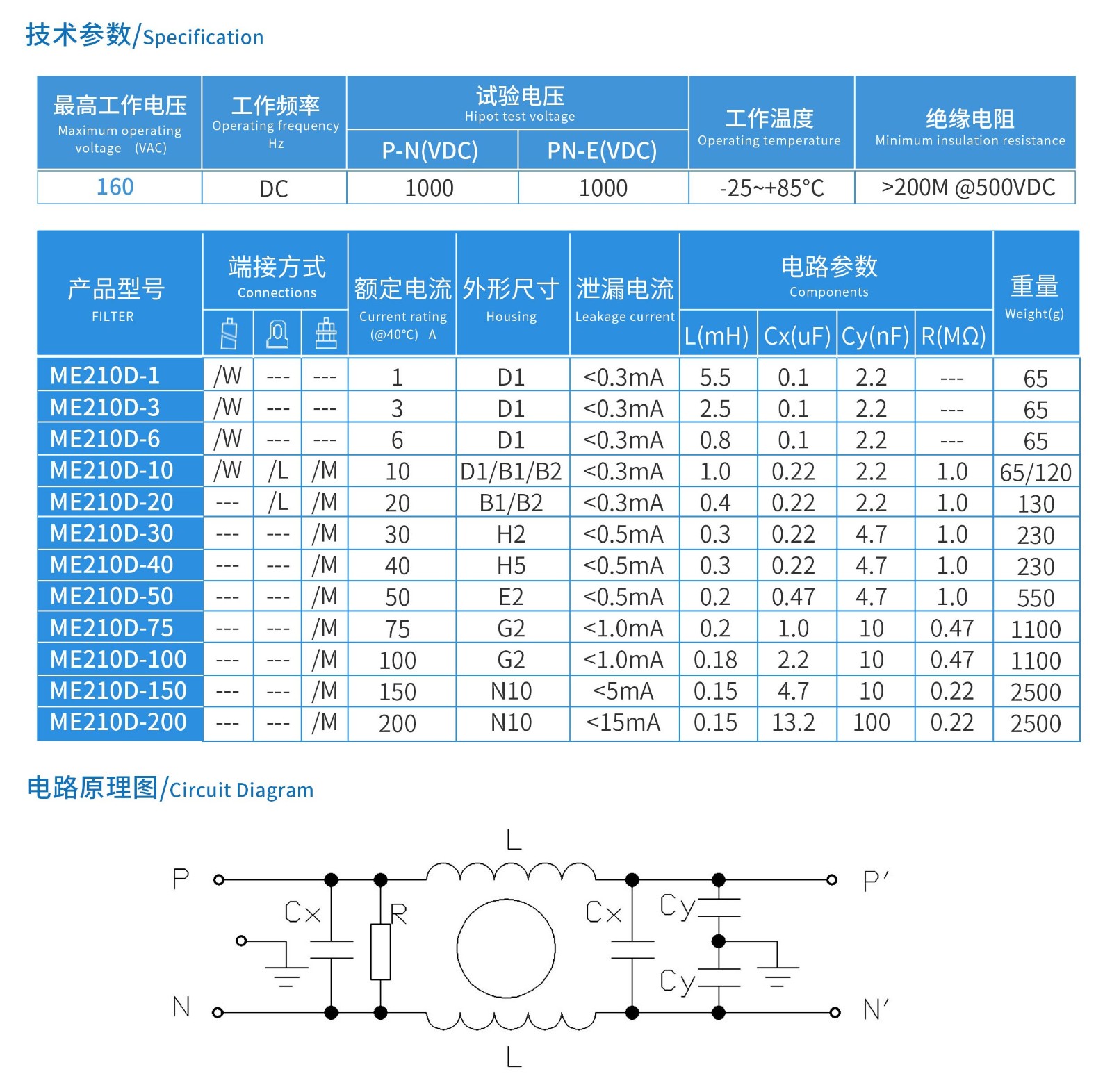 YB210D系列直流單節電源濾波器