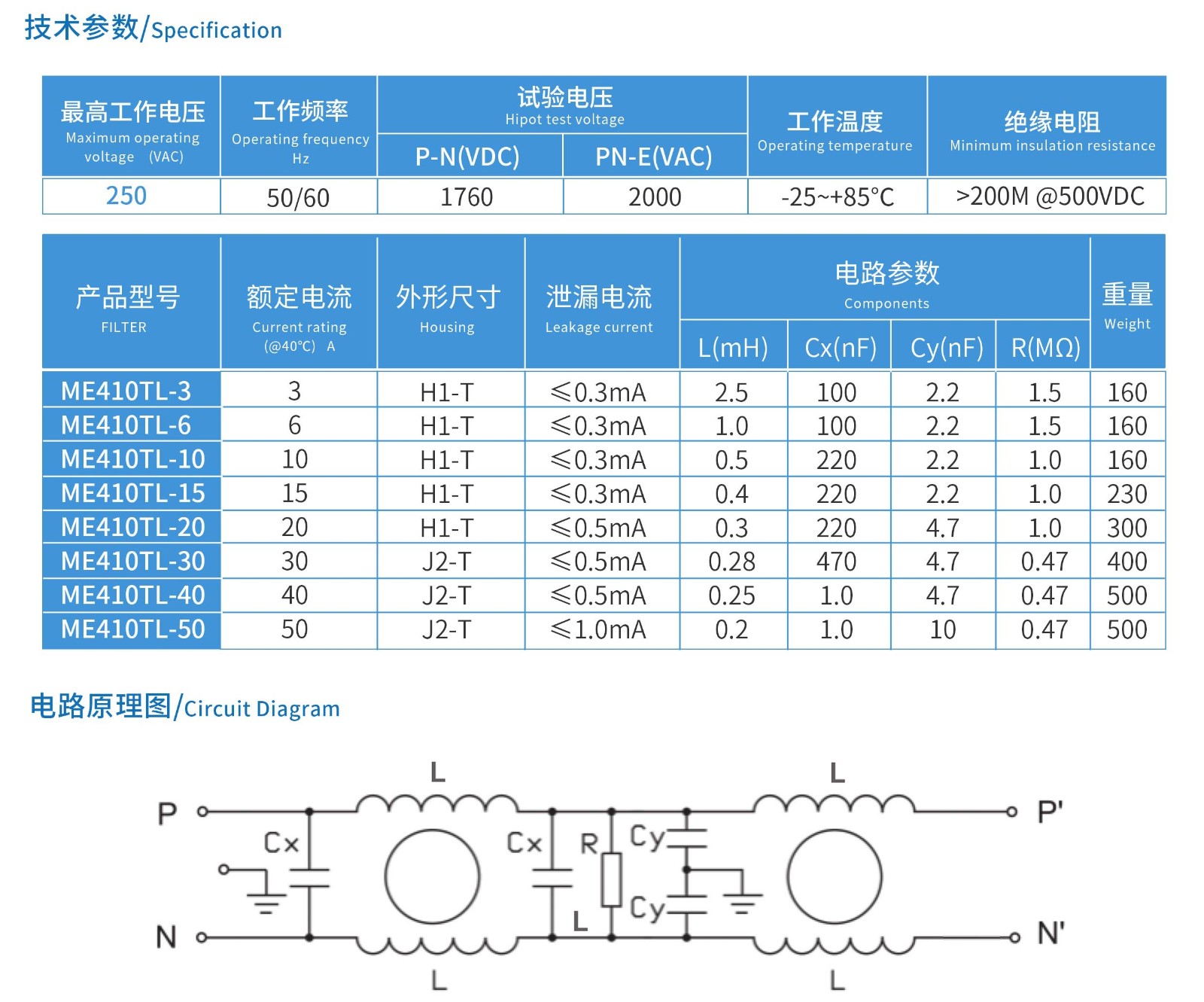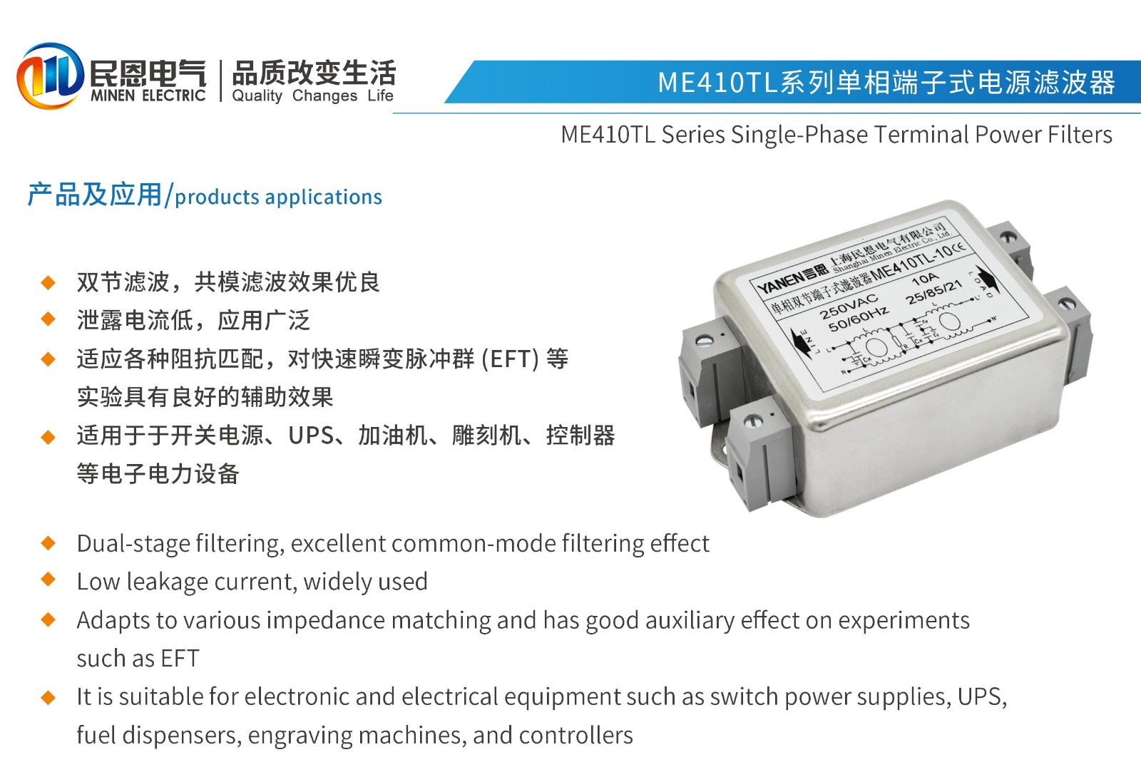 ME410TL系列單相雙節電源濾波器