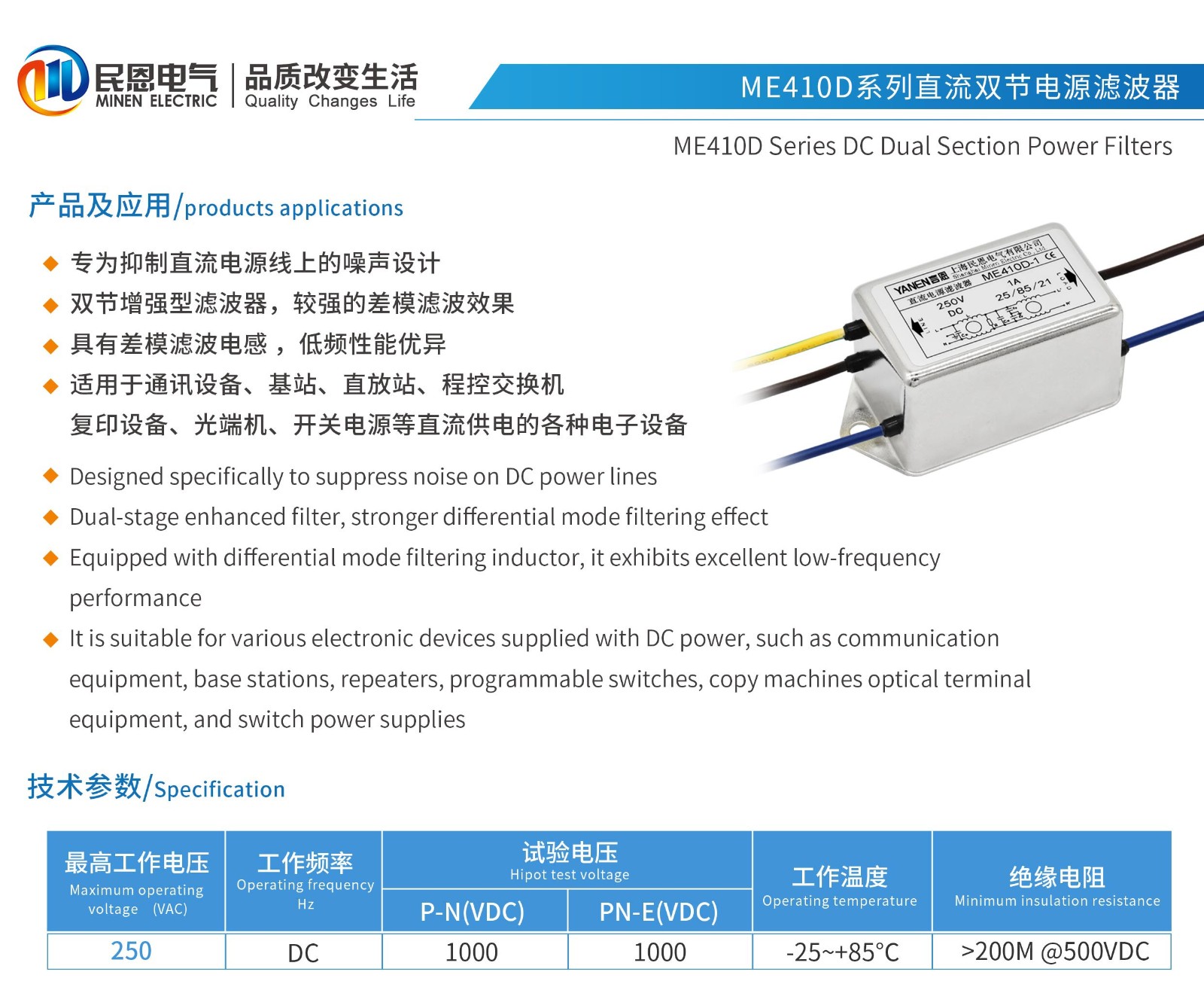 ME410D系列直流雙節電源濾波器