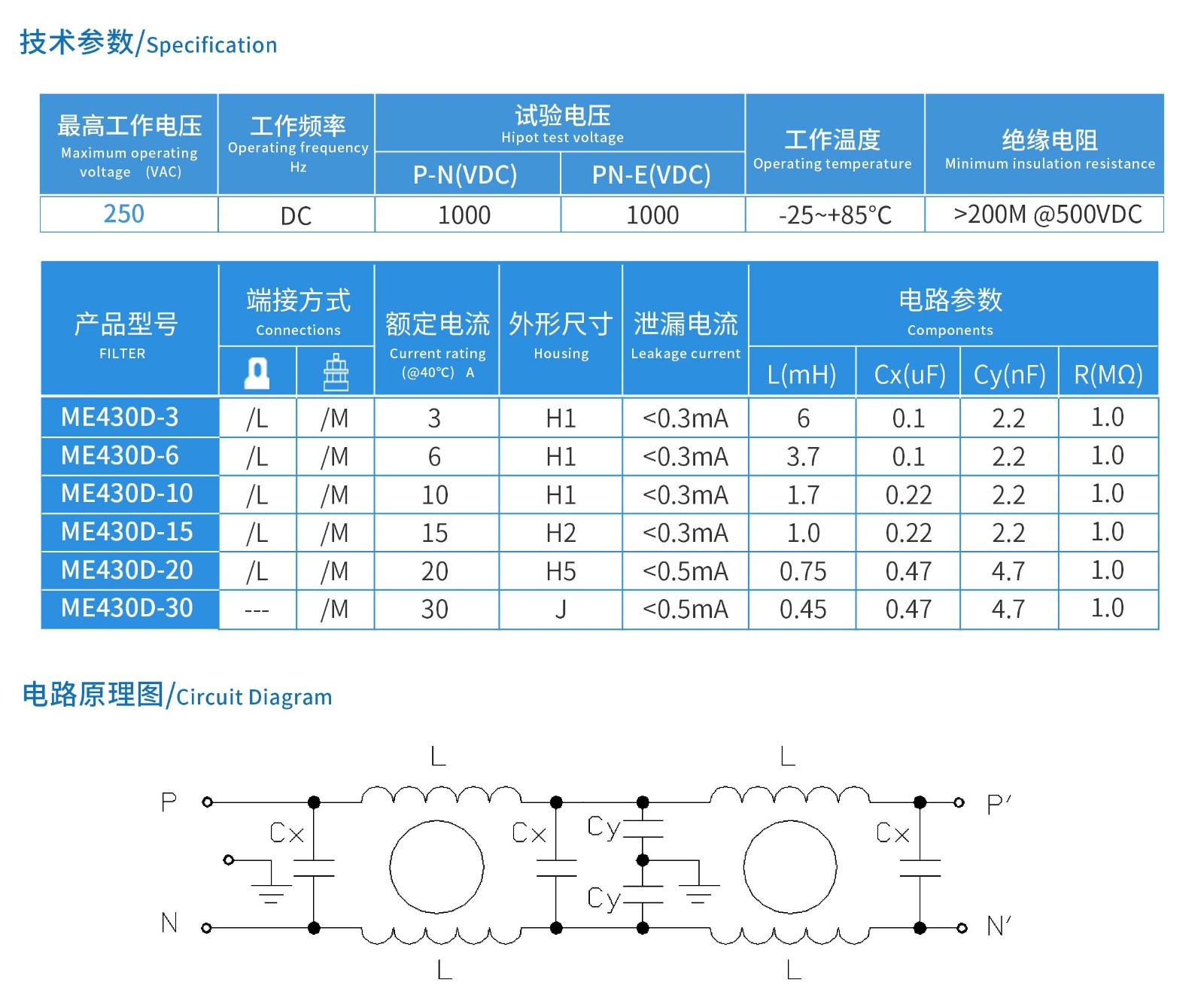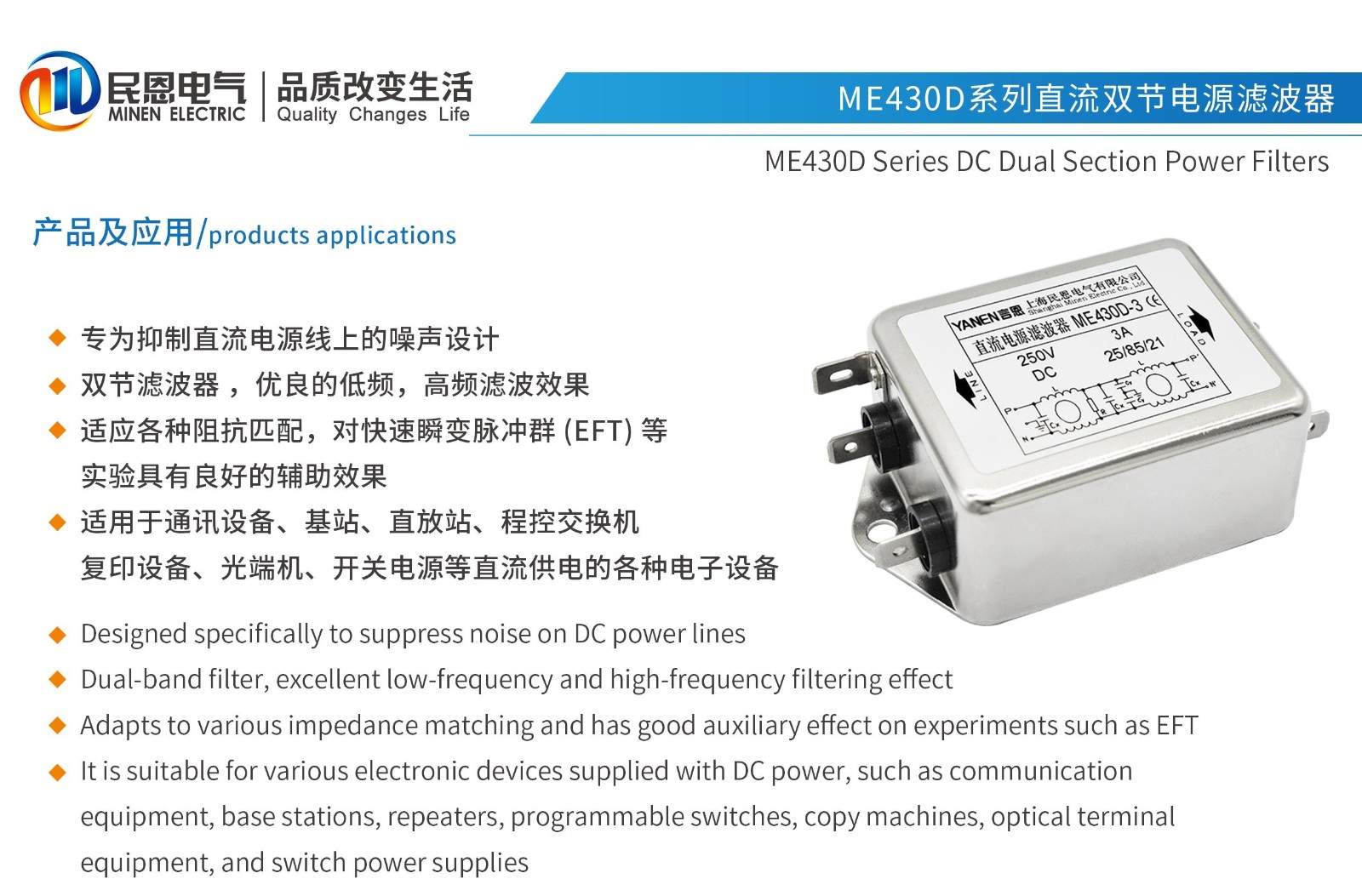 ME430D系列雙節直流電源濾波器