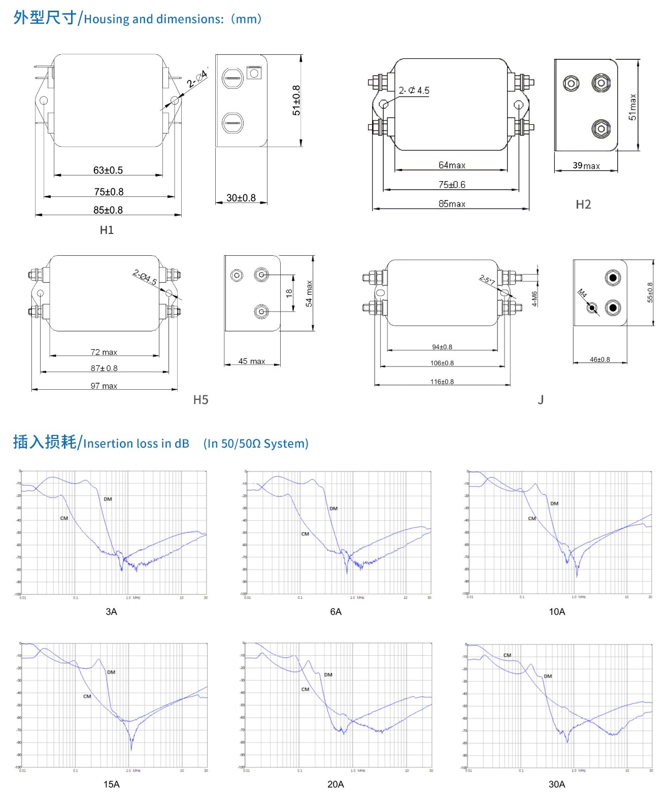 專為抑制直流電源線上的噪聲設計,雙節濾波器 ,優良的低頻、高頻濾波效果。