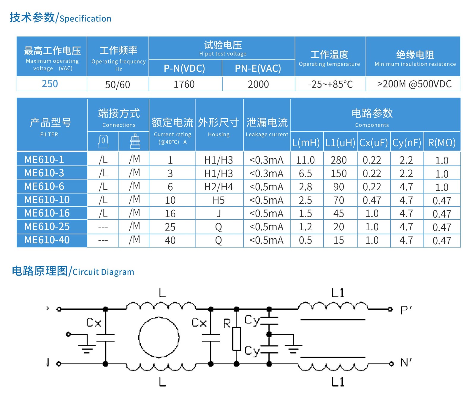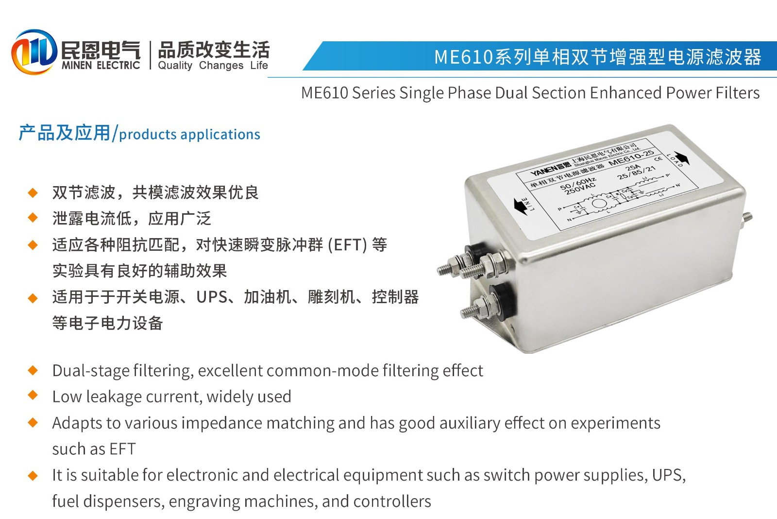 ME610系列單相雙節增強型電源濾波器