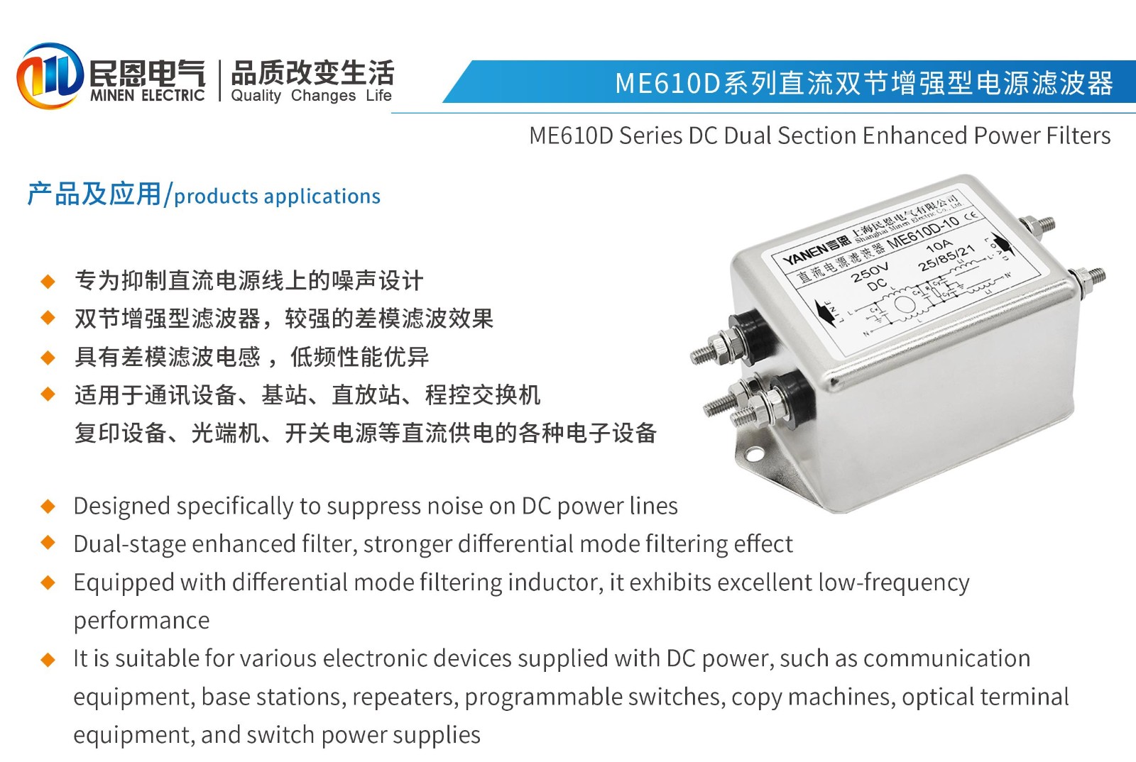 專為抑制直流電源線上的噪聲設計,雙節增強型濾波器,較強的差模濾波效果 ,具有差模濾波電感 ,低頻性能優異。