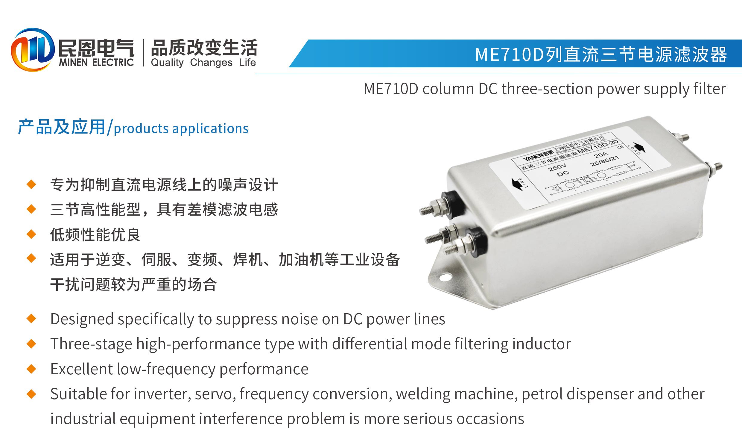 專為抑制直流電源線上的噪聲設計,三節高性能型,具有差模濾波電感,低頻性能優良。