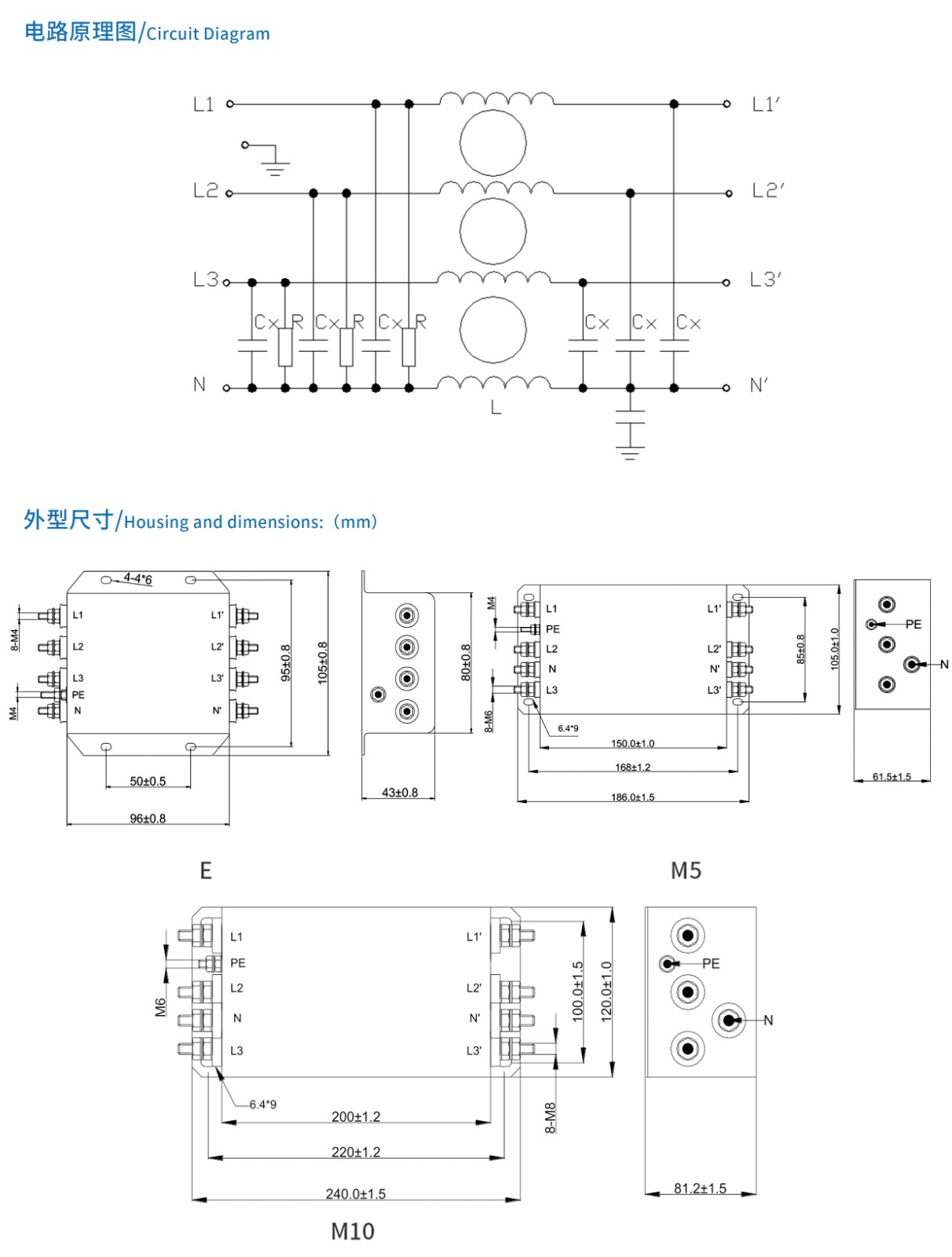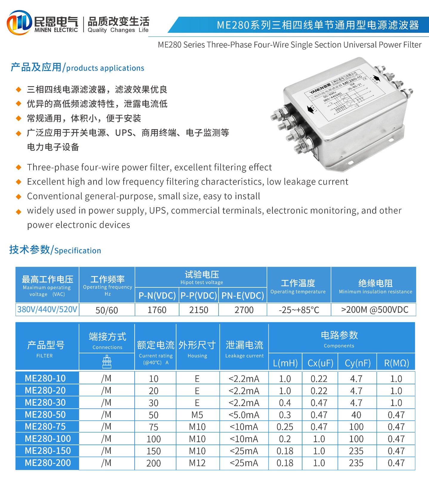 三相四線電源濾波器,濾波效果優良,優異的高低頻濾波特性,泄露電流低,常規通用,體積小,便于安裝