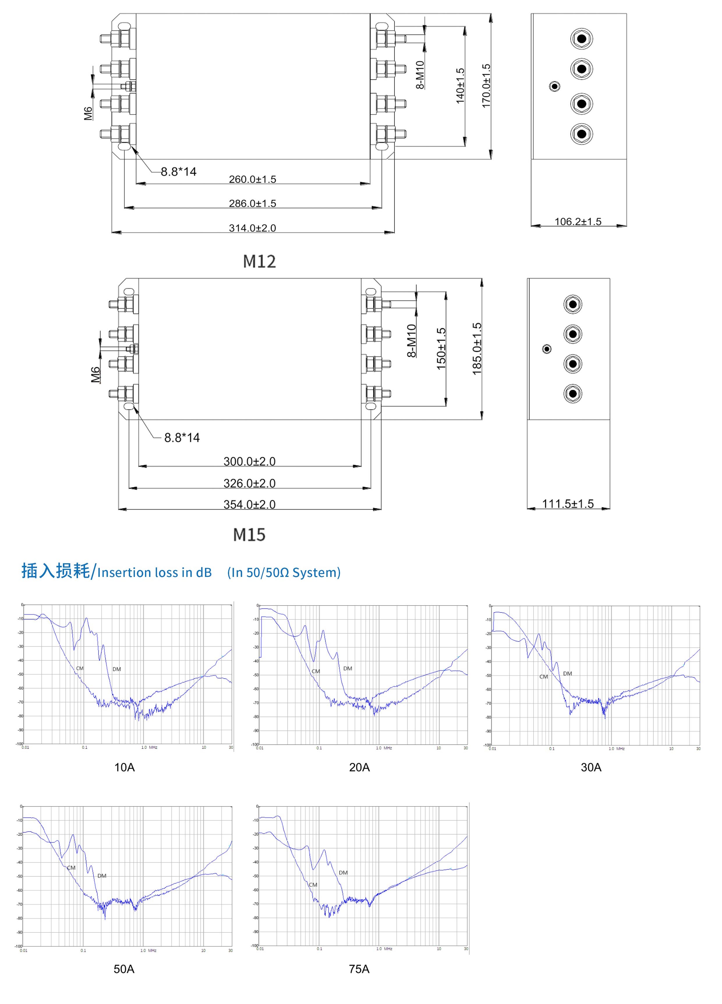 具有差模濾波電感,極佳的低頻衰減特性,三節濾波,性能最佳,優異的共模和差模抑制能力