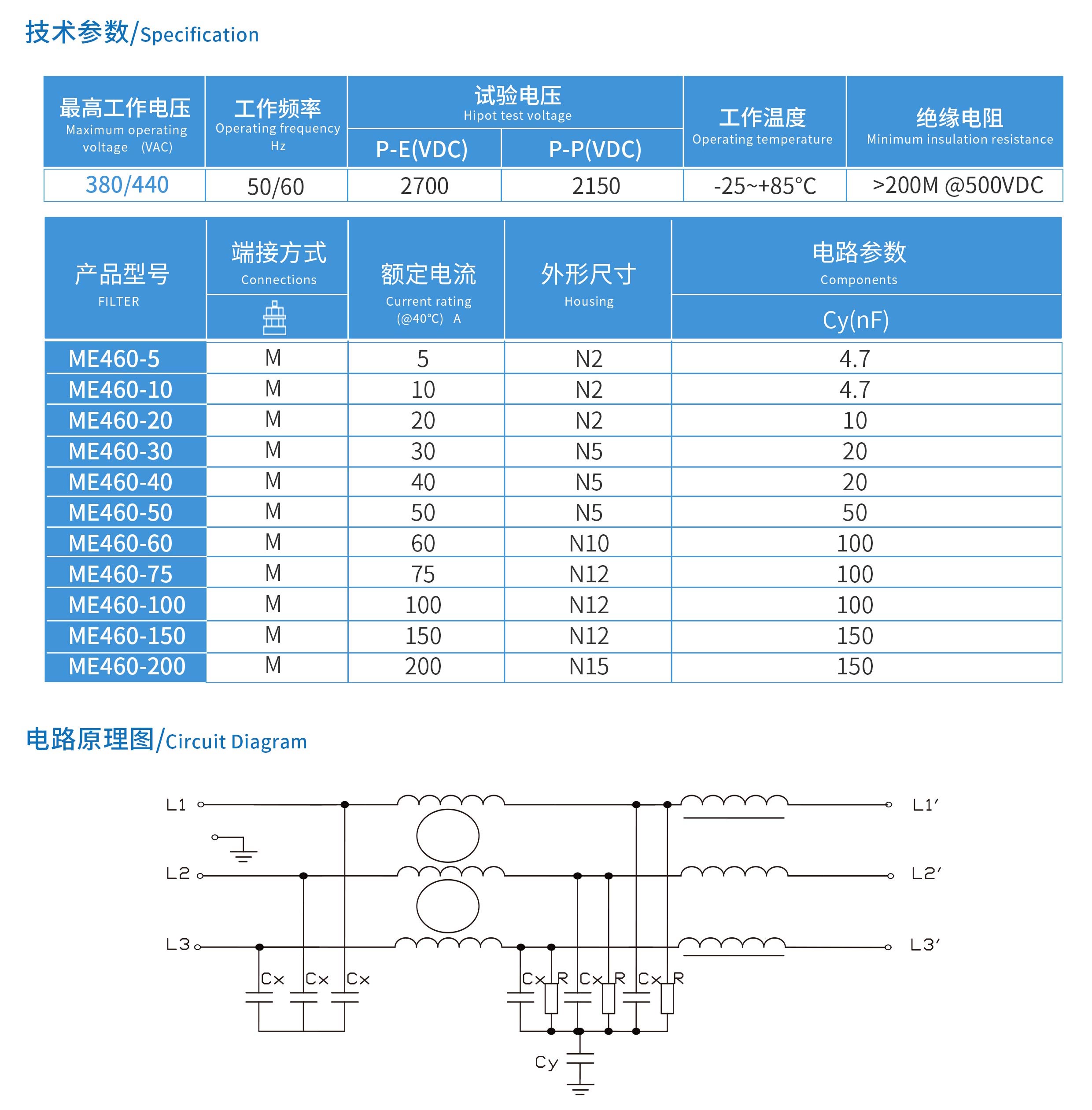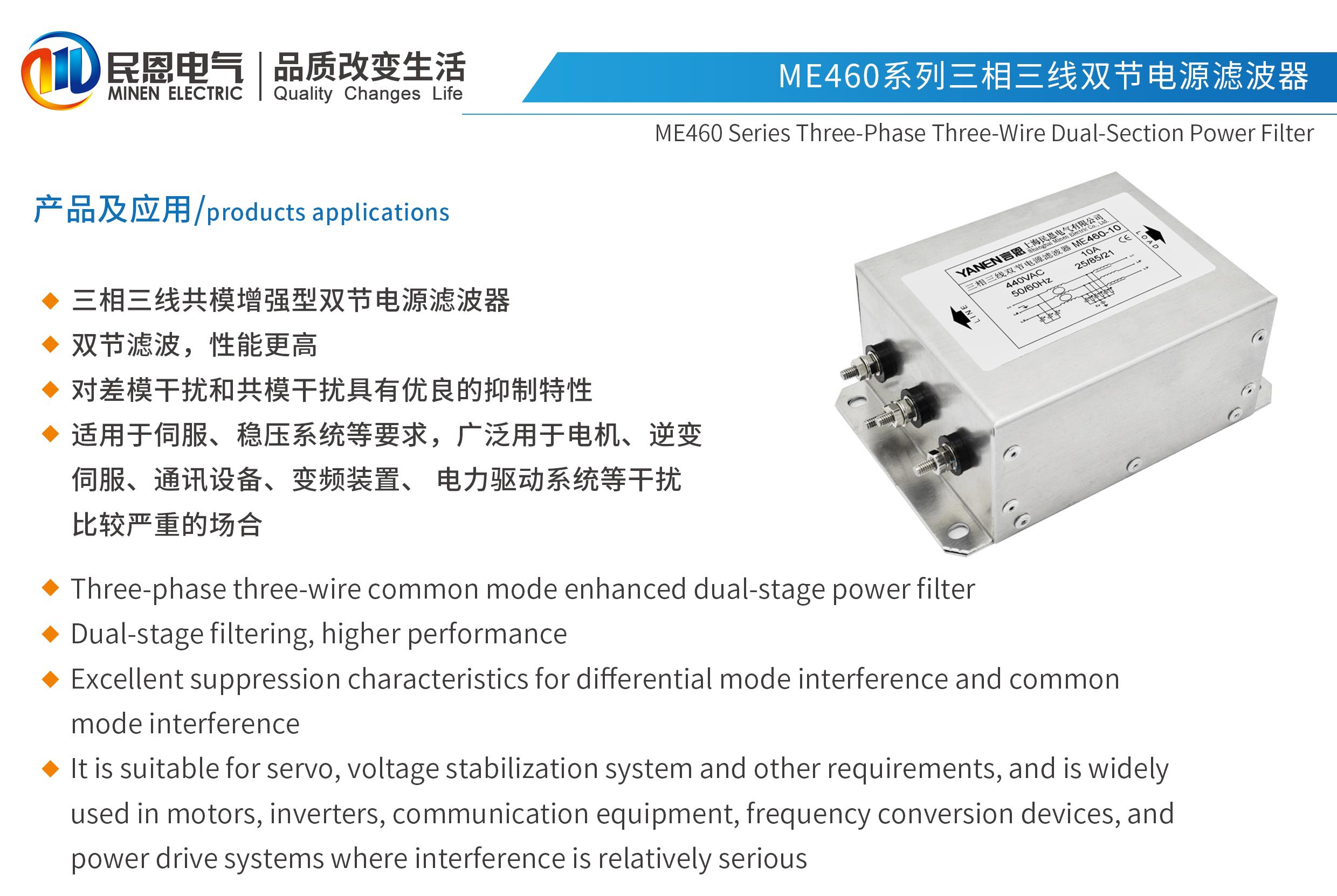 三相三線共模增強型雙節電源濾波器,雙節濾波,性能更高,對差模干擾和共模干擾具有優良的抑制特性