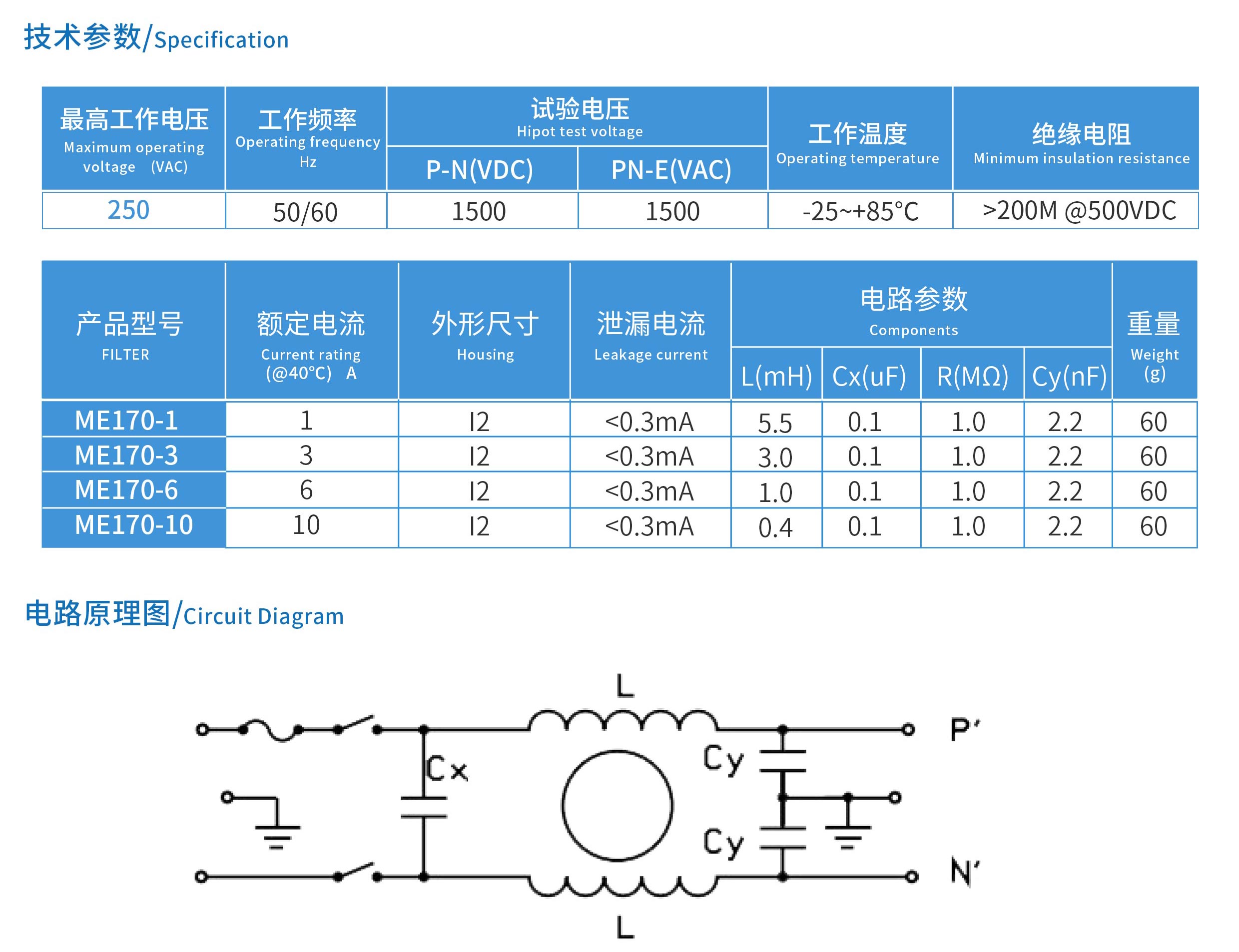 ME170系列單保險管及開關型IEC插座電源濾波器