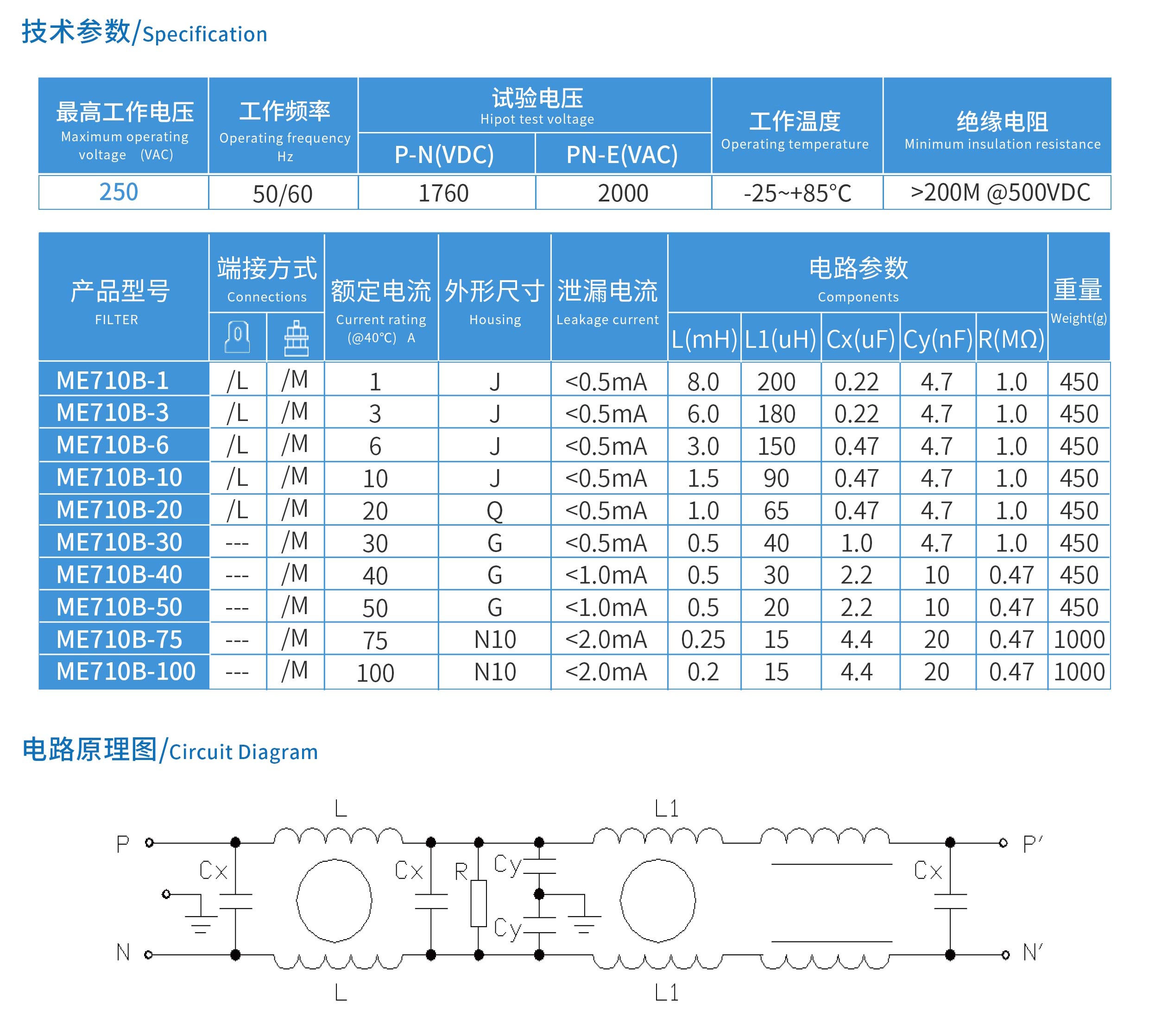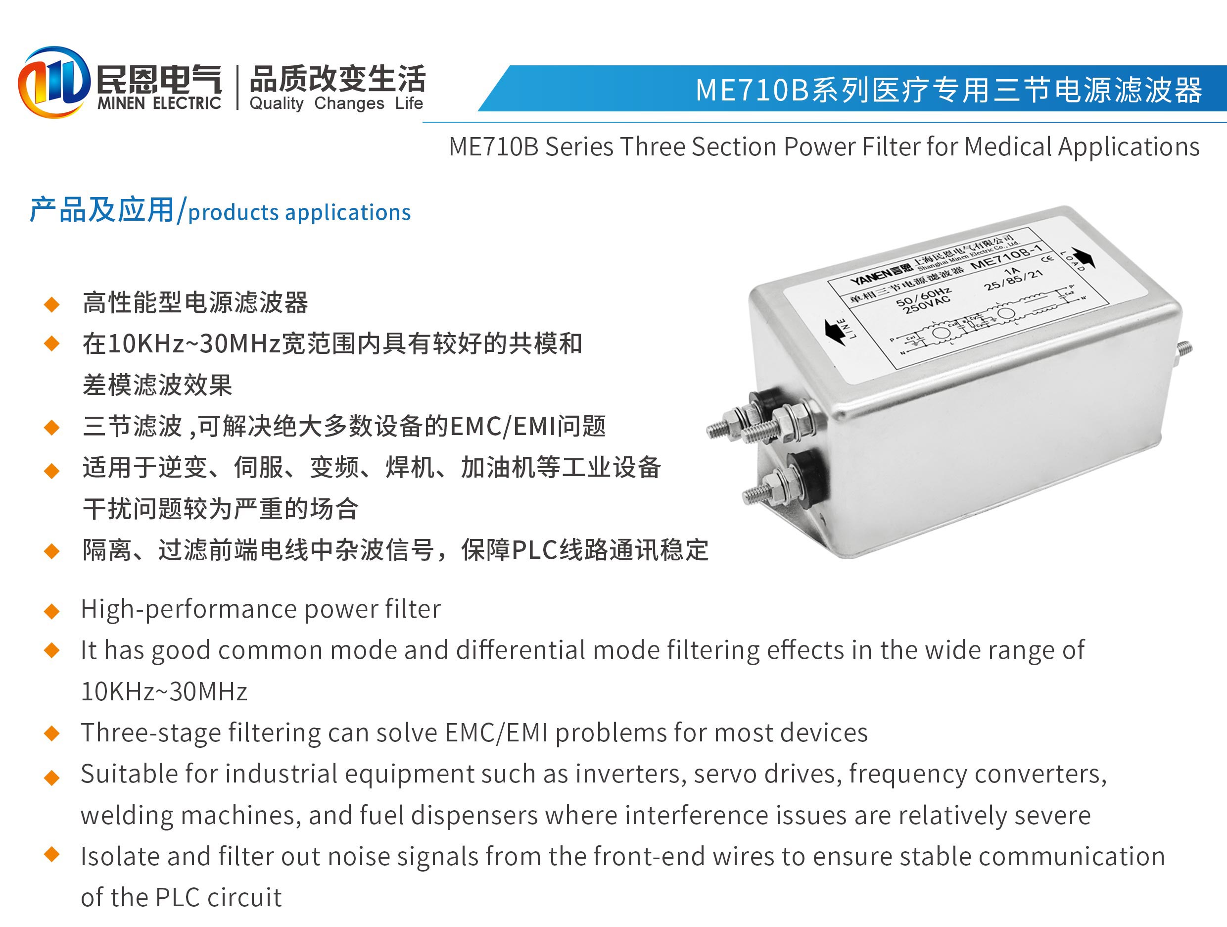 ME710B系列醫療專用三節高性能型電源濾波器