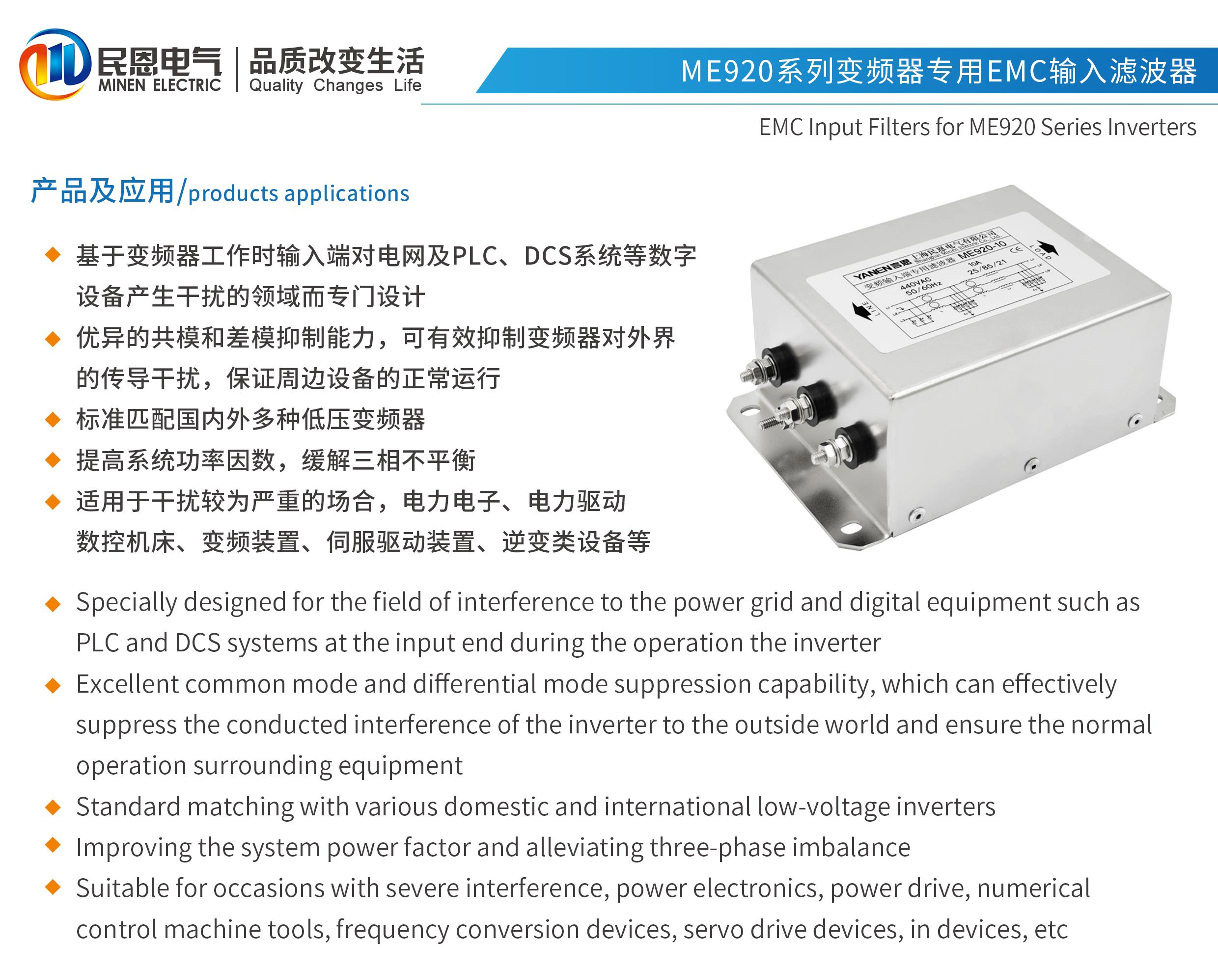 基于變頻器工作時輸入端對電網及PLC、DCS系統等數字設備產生干擾的領域而專門設計。較好的共模和差模抑制能力,可有效抑制變頻器、伺服驅動器等設備對外界的傳導干擾,保證周邊設備的正常運行;標準匹配國內外多種低壓變頻器。