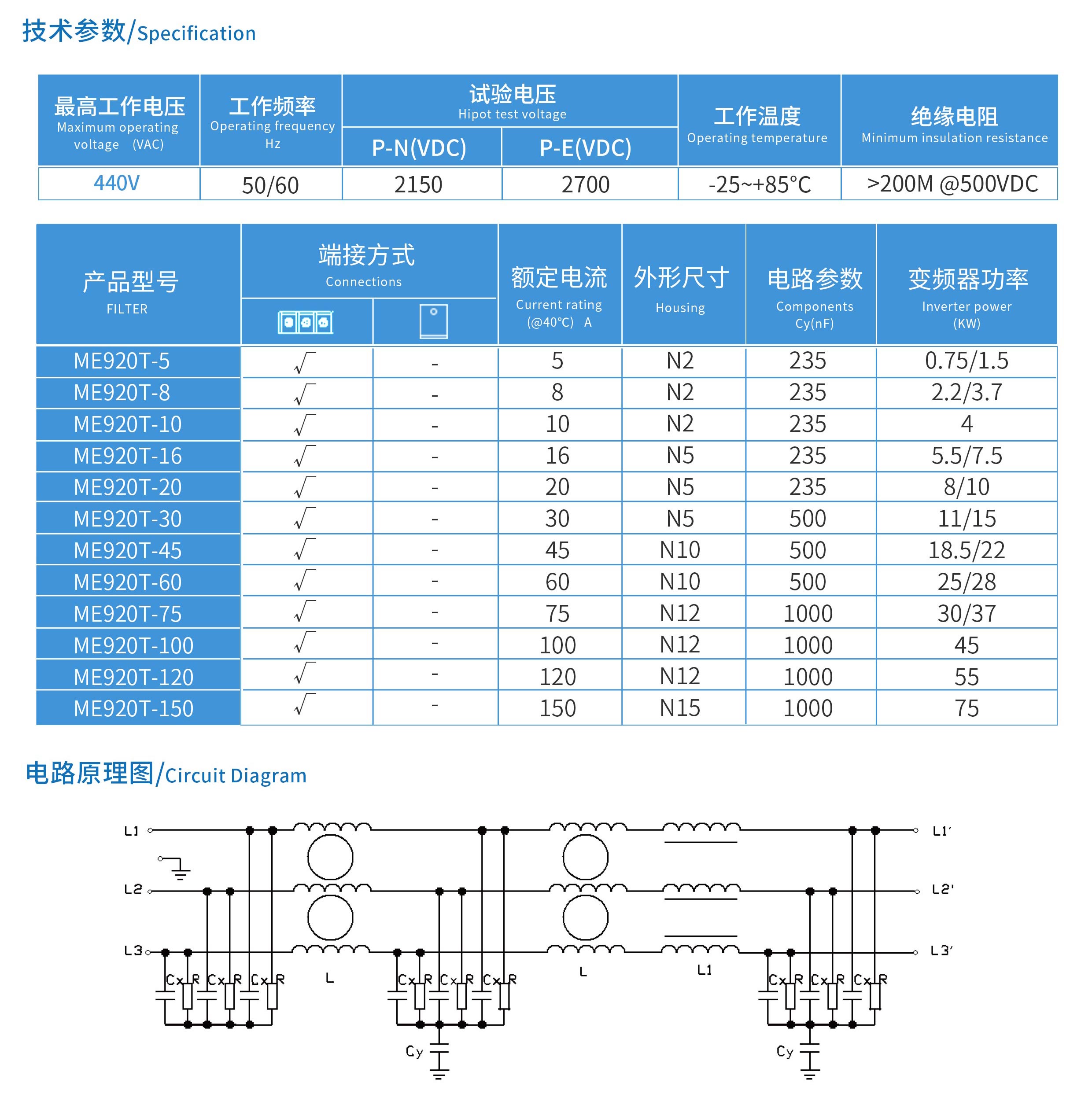 ME920T系列變頻器專用輸入EMC濾波器