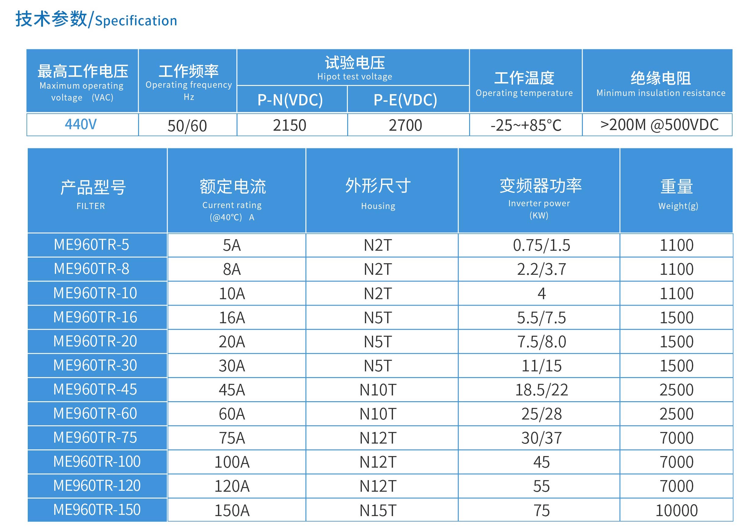 ME960TR系列變頻器端子臺式輸出EMC濾波器