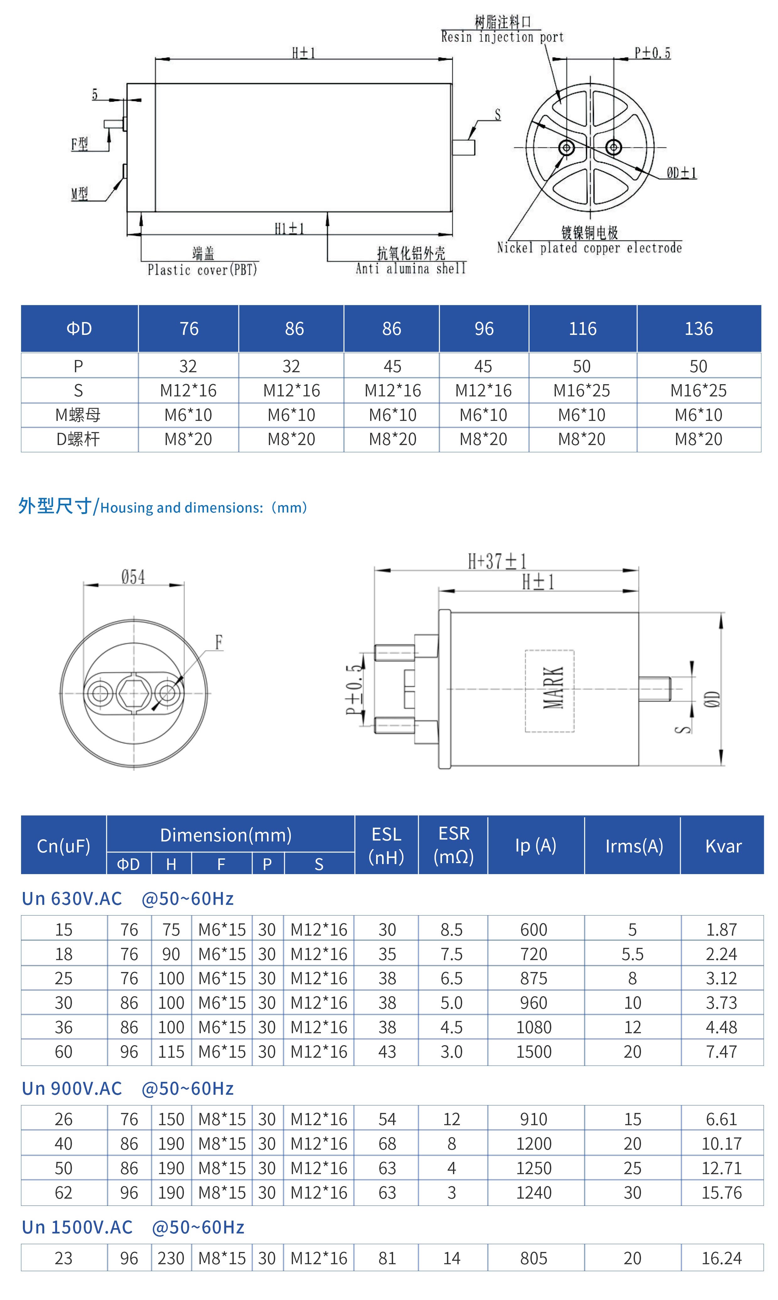 單相交流濾波電容器
