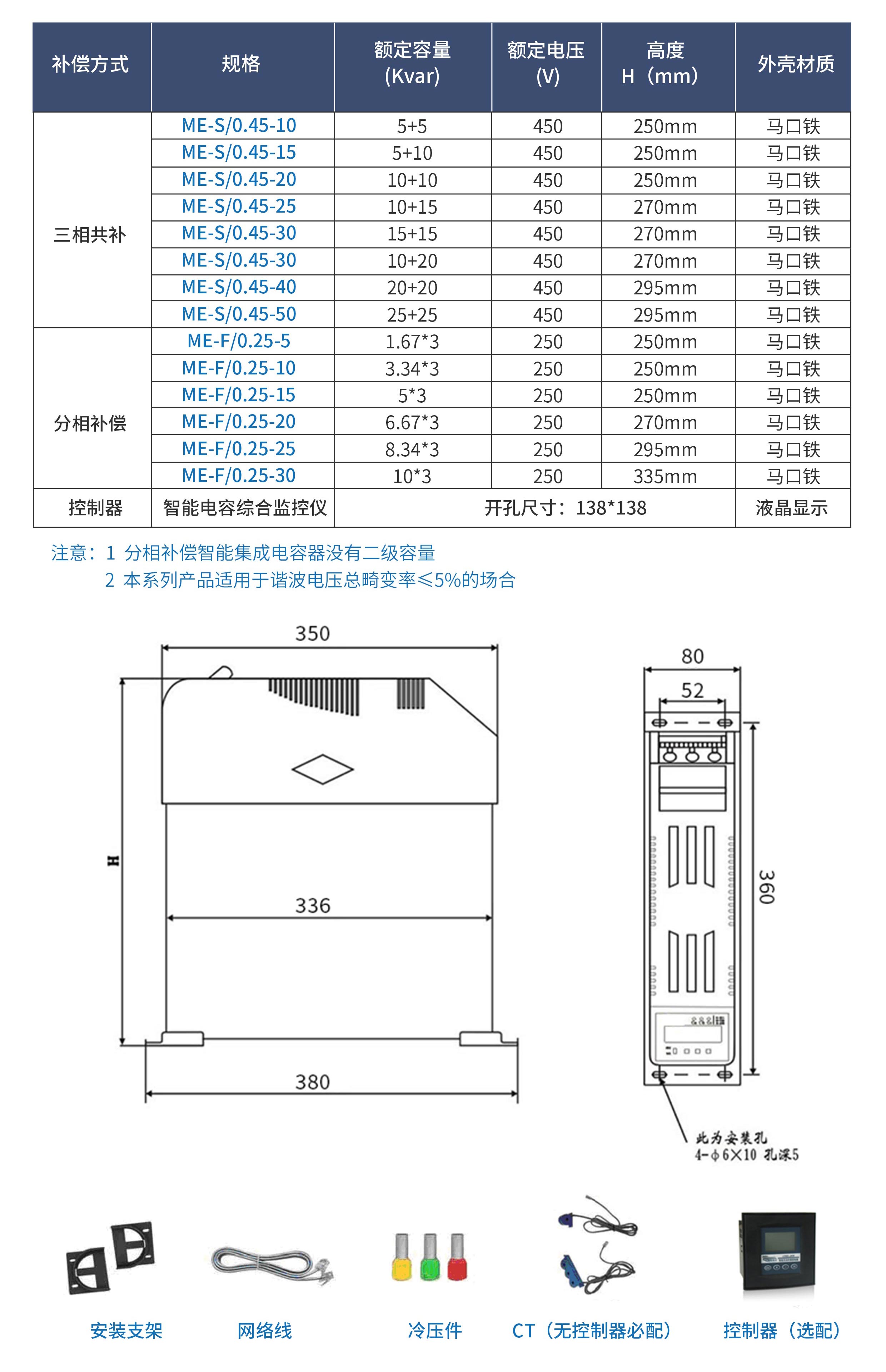 適用于補償工頻電力系統的感性無功功率,以提高功率因數,降低線路損耗,改善供電質量。