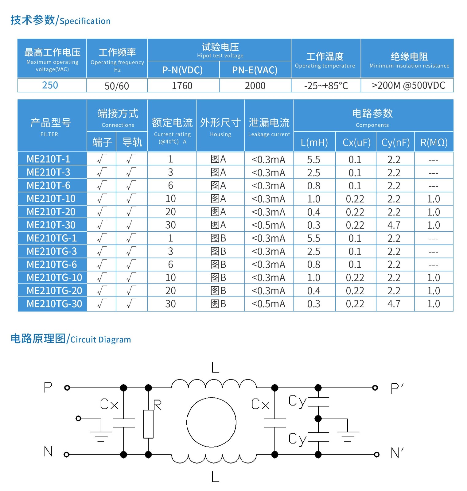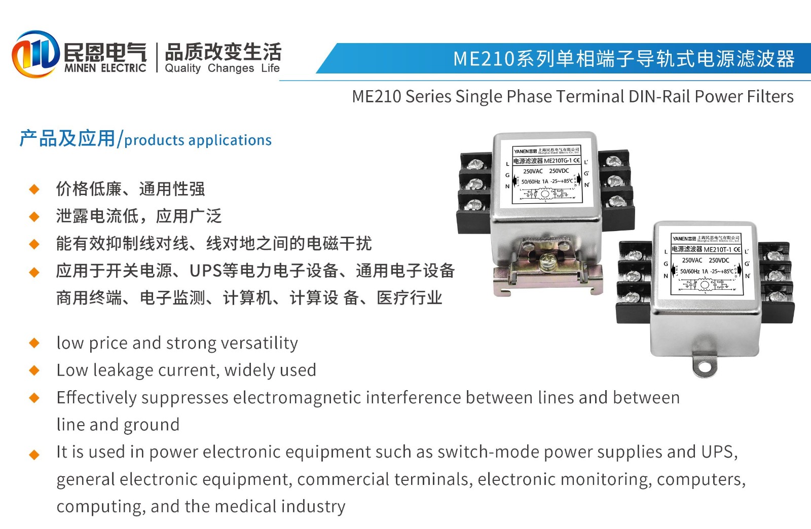 ME210T系列單相端子式電源濾波器